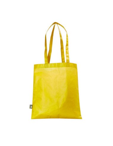 Bolsa reutilizable cosida de acabado laminado mate. Fabricada en resistente RPET con asas reforzadas.