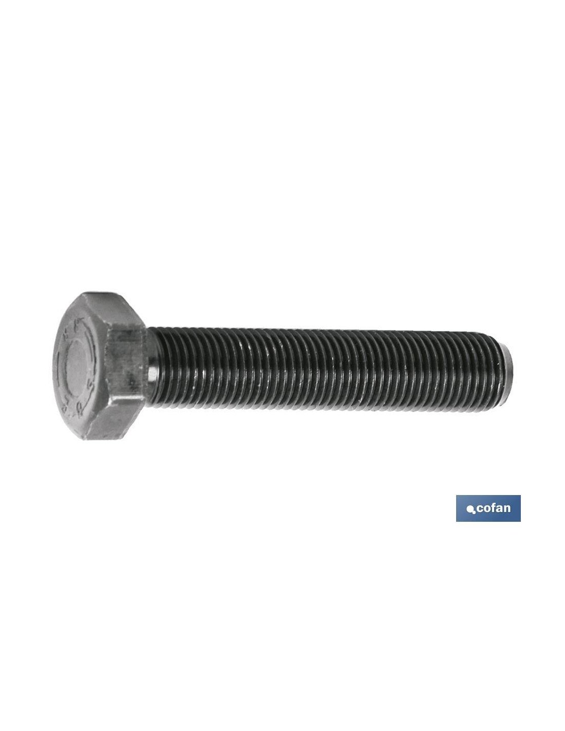 Tornillo cabeza hexagonal SAE (UNF-UNS) DIN-933, rosca total, clase 8.8, color negro. Medidas desde 1/4 hasta 1