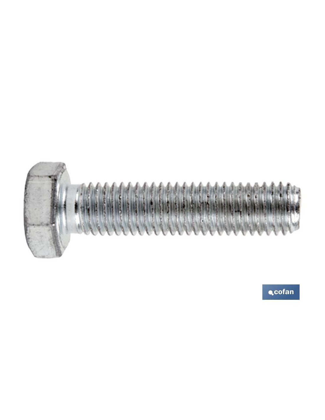 Tornillo cabeza hexagonal DIN-933, rosca total, clase BR, color Zincado. Medidas desde M-4 hasta M-24