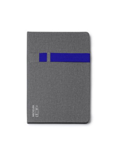 Bloc de notas A5 con tapa rígida de RPET. Incluye soporte para bolígrafo y móvil. Cuentan con 80 hojas lisas.