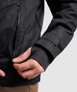 Chaqueta impermeable en tejido cuadrillé con forro interior. Cuello alto y capucha extraíble con ajustadores. Cremallera frontal inyectada y protector de barbilla. Un bolsillo en el pecho y dos laterales con cremallera. Puños con abertura para pulgar y ajustador de velcro. Dos bolsillos interiores con velcro. Ajustadores en interior del bajo.