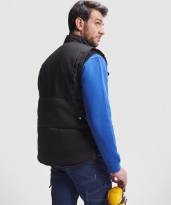 Chaleco laboral multibolsillos acolchado con faldón trasero.