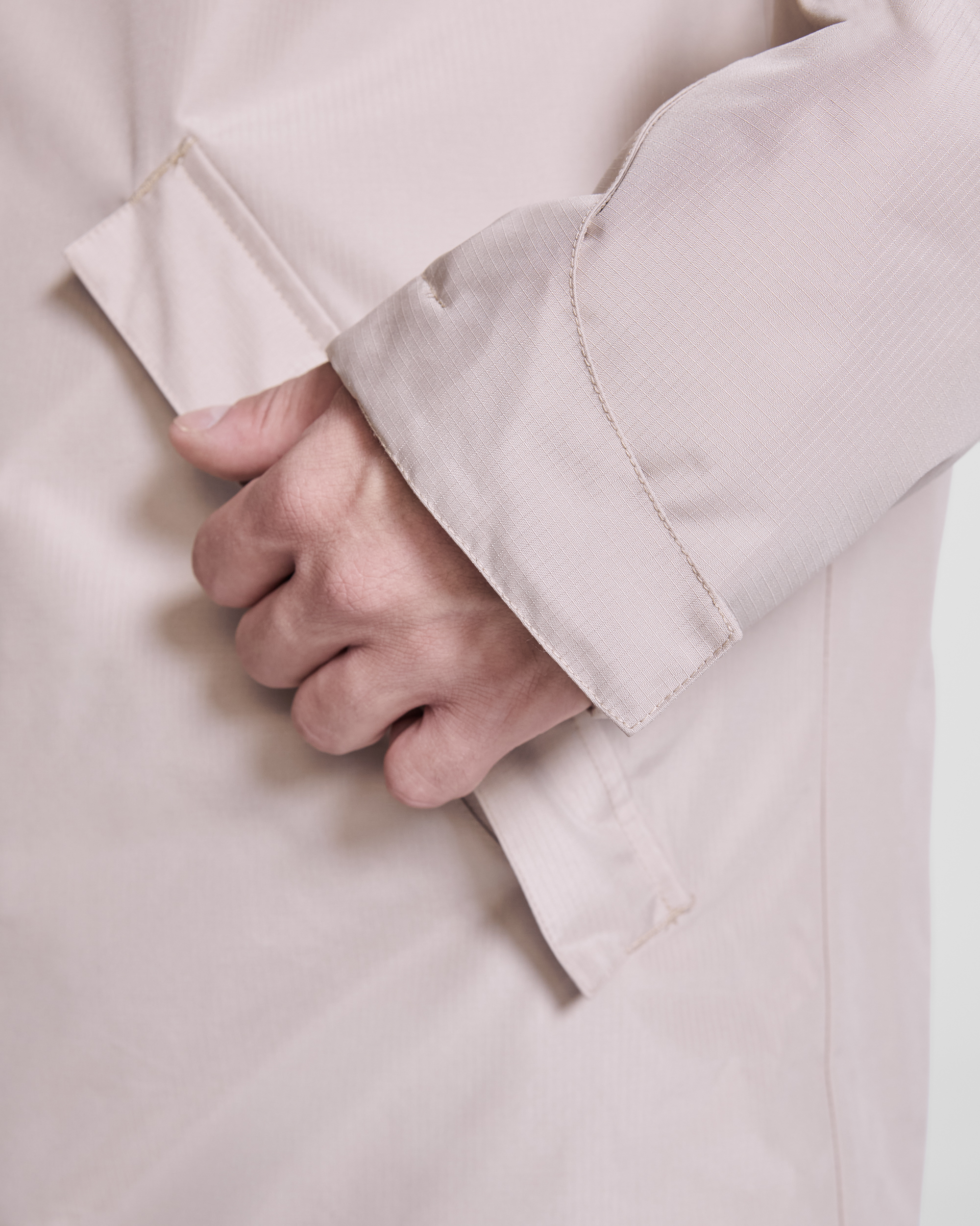 Parka acolchada con capucha extraíble con ajustadores elásticos. Tejido impermeable. Cremallera frontal al tono cubierta por una solapa ancha del mismo tejido. Puños con ajustador de velcro. Bolsillos laterales con cremalleras al tono y cubiertas por una tapeta del mismo tejido. Bolsillo interior en pecho izquierdo. Acceso interior para reprocesos. Certificado GRS.