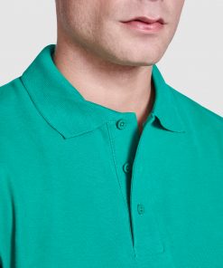 Polo de manga corta de algodón. Punto piqué. Cuello tejido 1×1. Tapeta de 3 botones. Cubrecosturas en cuello del mismo tejido.