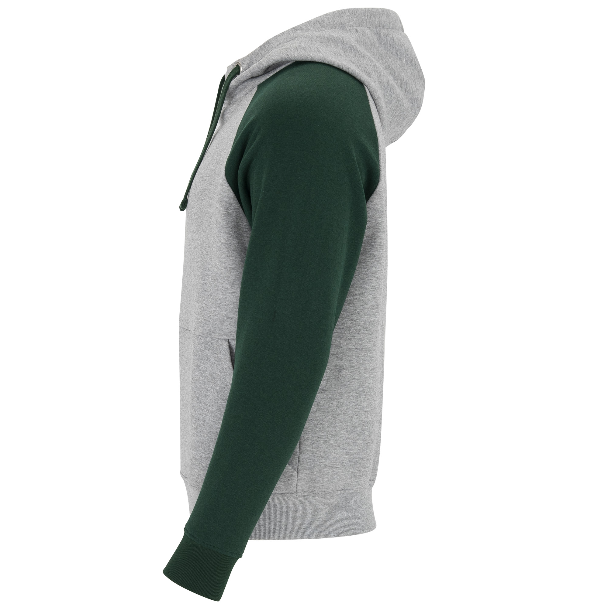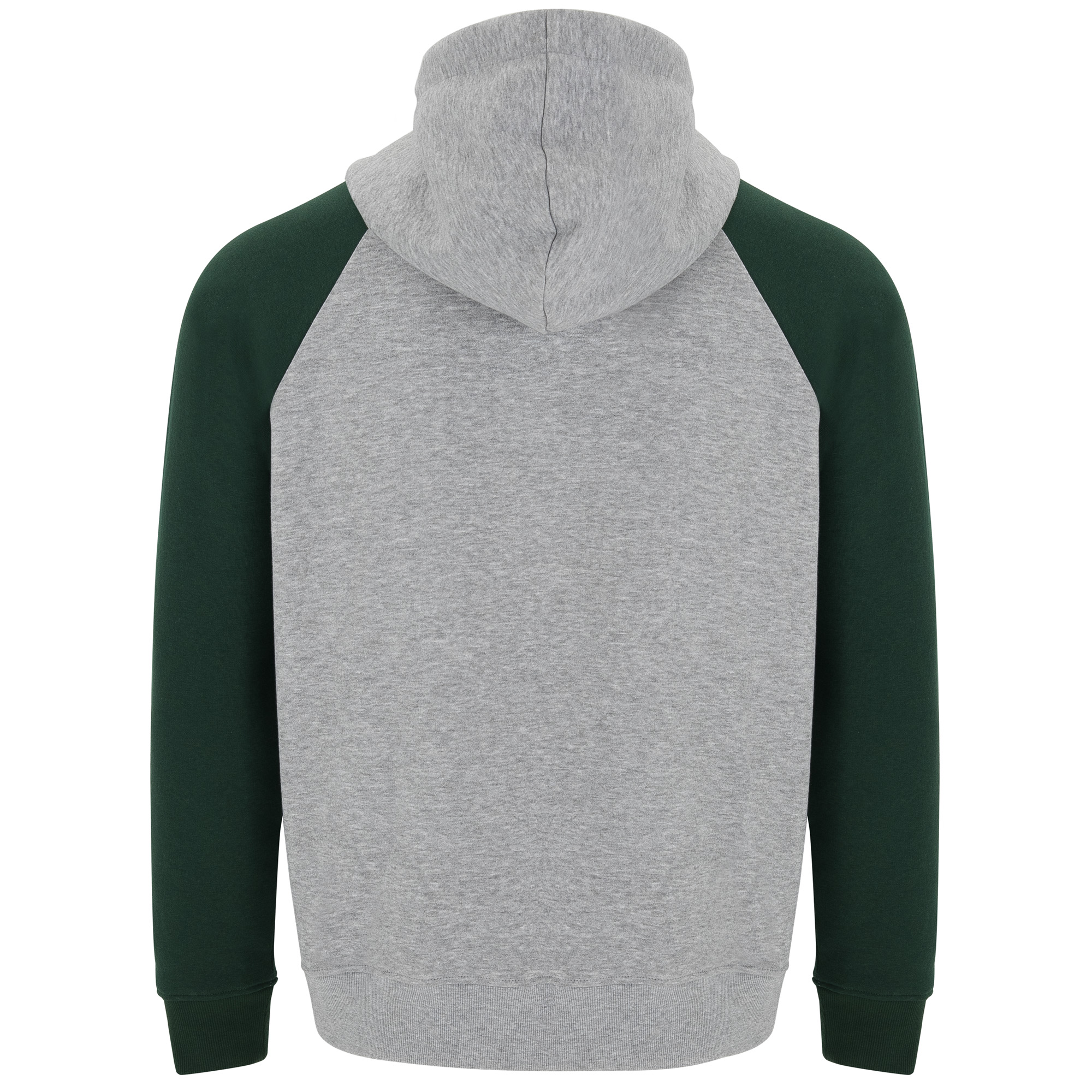 Sudadera unisex bicolor con capucha forrada. Manga ranglan. Puños y cinturilla en canalé 2×1 con elastano. Cubrecosturas del mismo tejido. Cordón plano en capucha y ojales metálicos.