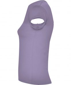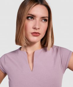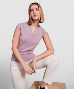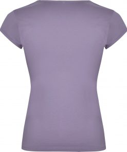 Camiseta de manga corta entallada en cintura. Algodón peinado. Escote entretelado en V. Ribete en mangas del mismo tejido al tono. Cubrecosturas en cuello del mismo tejido.
