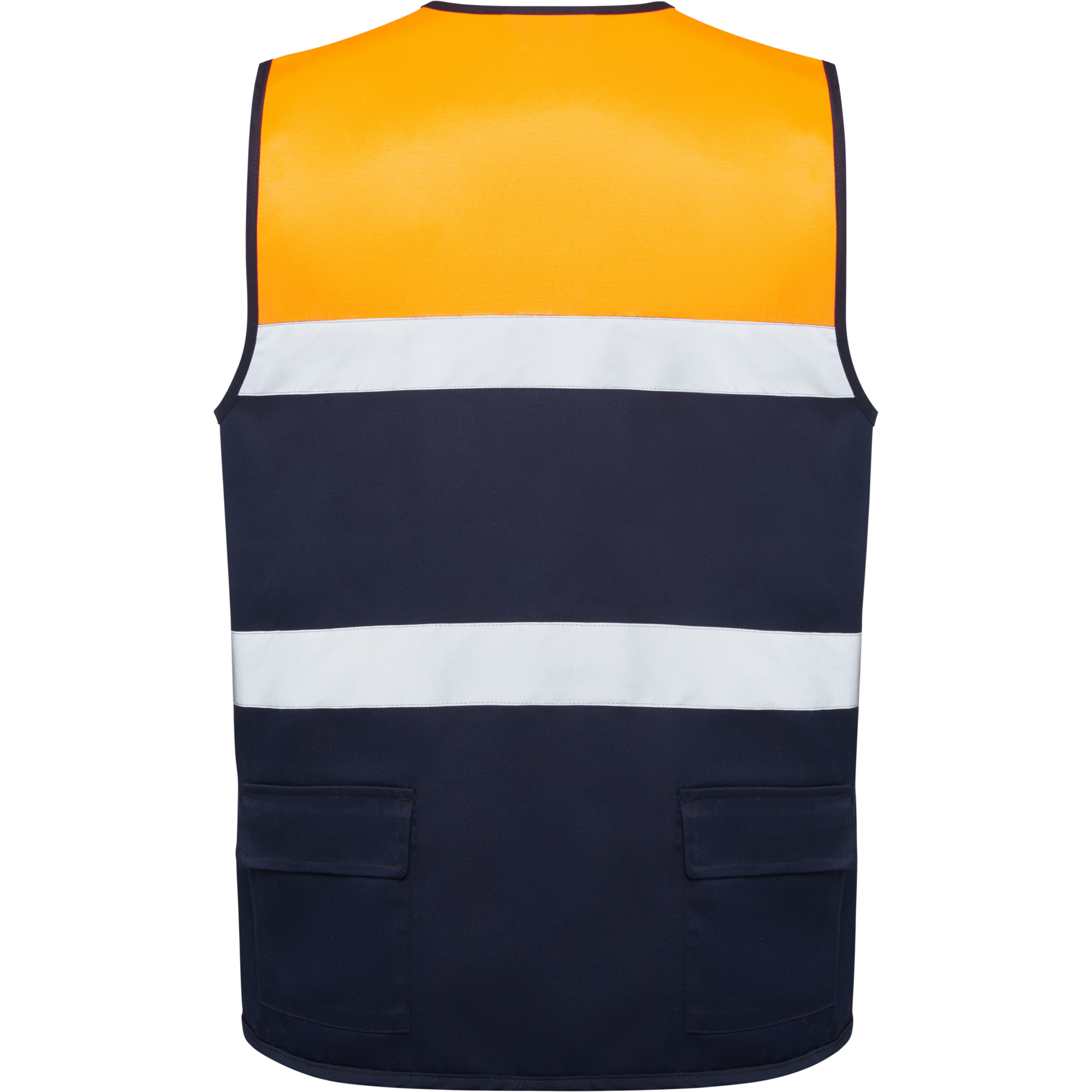 Chaleco multibolsillos bicolor de alta visibilidad.