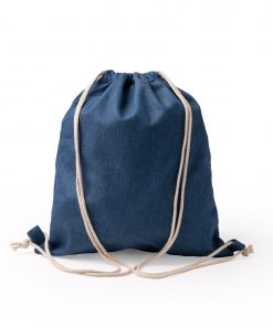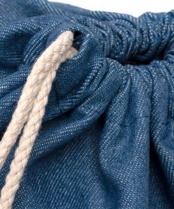 Mochila realizada en tejido vaquero reciclado con cuerdas de algodón de 8 mm.