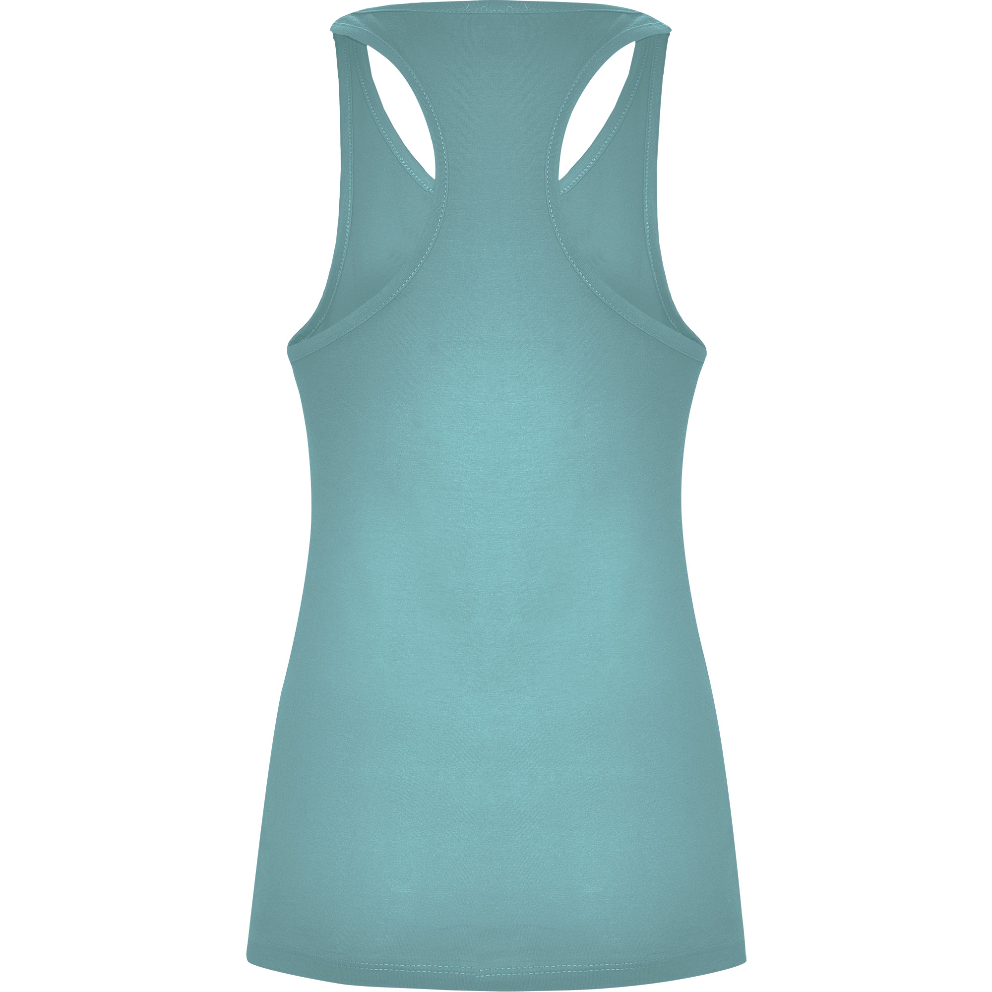 Camiseta de tirantes espalda nadadora entallada en cintura. Cuello con amplio escote redondo y sisas con ribete del mismo tejido.
