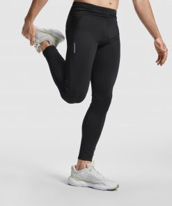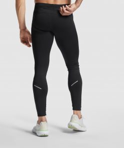 Malla larga running hombre transpirable. Cinturilla engomada con cordón cruzado ajustable. Detalles reflectantes. Mini bolsillo trasero.