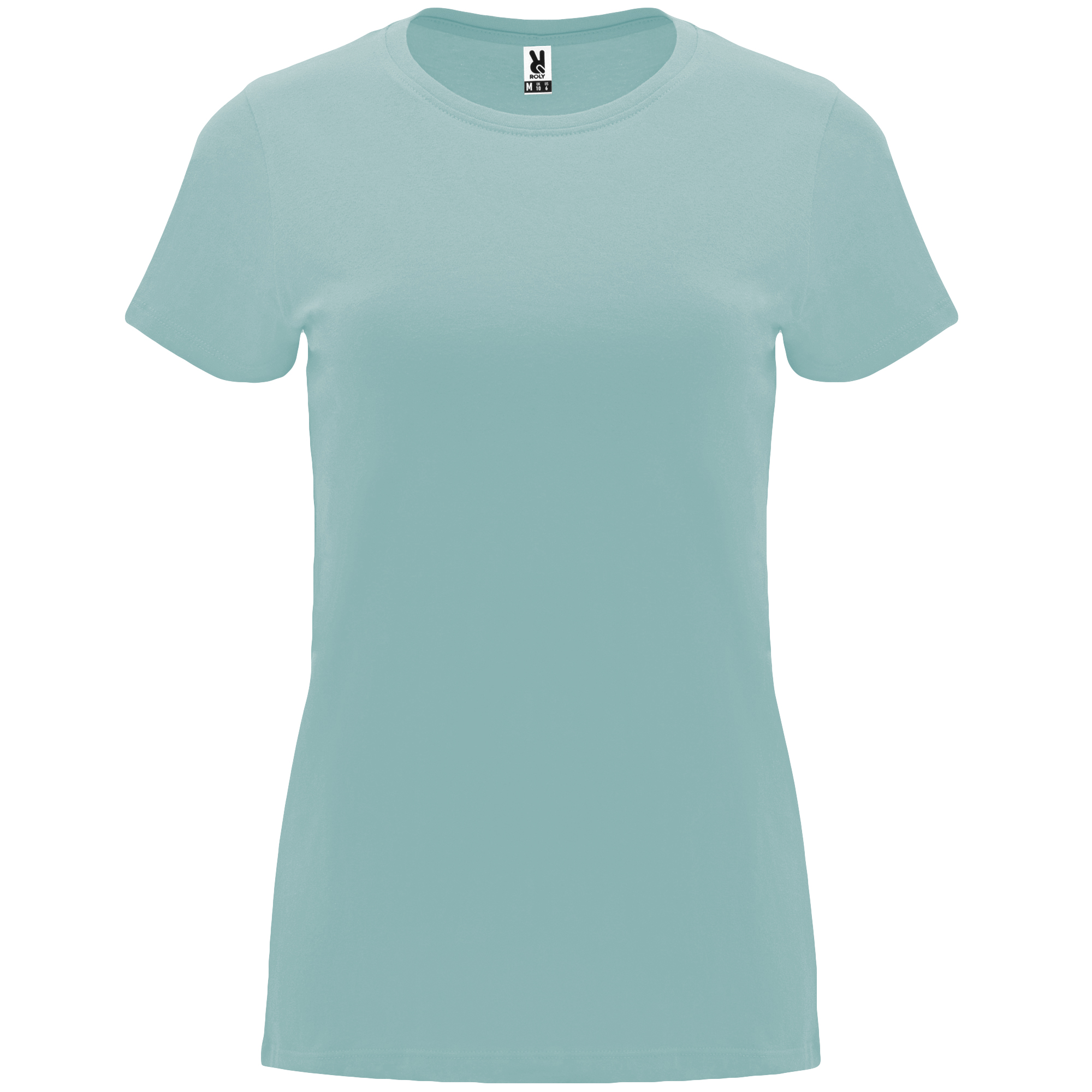 Camiseta de manga corta entallada en cintura. Cuello redondo en canalé 1×1. Cubrecosturas en cuello del mismo tejido.