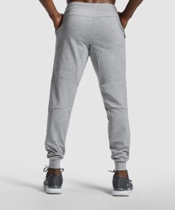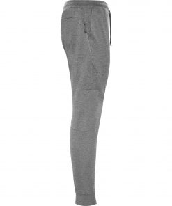 Pantalón largo entallado al tobillo. Cinturilla engomada con cordón ajustable y ojales metálicos. Bolsillos laterales con cremallera. Bolsillo extra grande insertado en costura lateral derecha con cremallera invertida. Cortes transversales a la altura del muslo. Puños en rib 1×1. Canesú trasero.