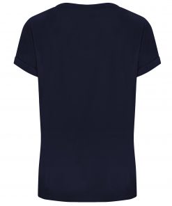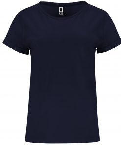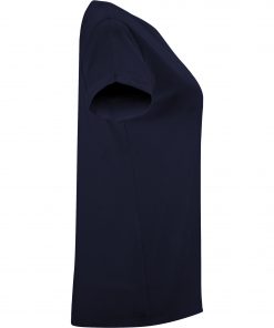 Camiseta de manga corta ligeramente entallada en cintura. Cuello redondo del mismo tejido. Cubrecosturas en cuello del mismo tejido. Detalle de costuras de refuerzo en dobladillos.