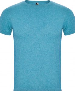 Camiseta de manga corta tubular con acabado vigoré. Cuello redondo en canalé 1×1. Cubrecosturas en cuello del mismo tejido.