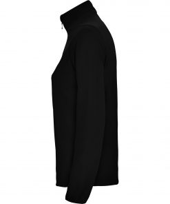 Micropolar con media cremallera en cuello y protector de barbilla. Puños con ribete elástico a tono. Corte entallado.