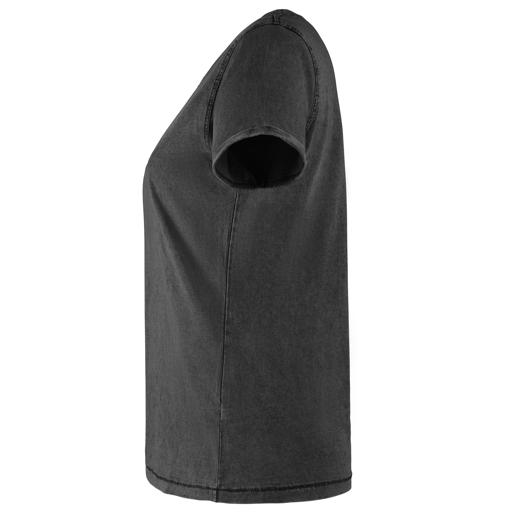 Camiseta de manga corta ligeramente entallada en cintura efecto lavado. Algodón peinado. Cuello redondo en canalé 1×1. Cubrecosturas en cuello del mismo tejido. Costuras dobles en laterales y sisas. Costuras decorativas en mangas y bajo y detalle de costuras de refuerzo en dobladillos.