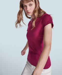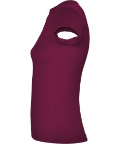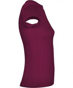 Camiseta de manga corta entallada en cintura. Cuello redondo en canalé 1×1. Cubrecosturas en cuello del mismo tejido.