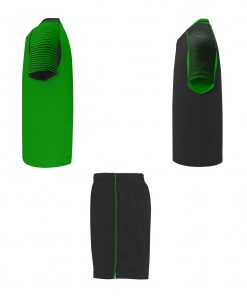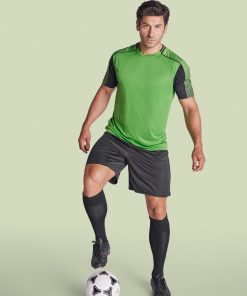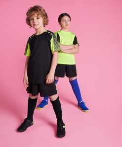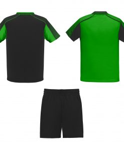 Conjunto deportivo unisex de dos camisetas y un pantalón transpirable. Camisetas con piezas en hombro sublimadas. Detalle cuello ribeteado en la parte posterior. Cubrecosturas en el cuello. Pantalón con cintura engomada y cordón de ajuste. Vivos a contraste de color. Aperturas laterales.