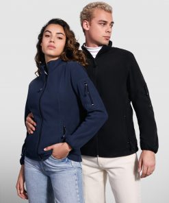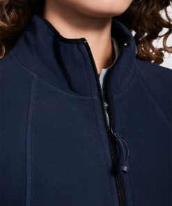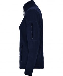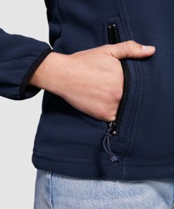 Sudadera polar para deporte al aire libre, con cuello alto y manga larga con ribetes en contraste. Bolsillo con cremallera en manga izquierda y cremallera central, ambas en contraste. Costuras en lateral y pecho. Codera en el mismo tejido.