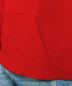 Sudadera de manga larga estilo ranglán. Parte posterior del cuello y parte inferior de los puños en canalé 1×1. Bolsillo canguro con terminación sin costuras. Costuras laterales diagonales hacia parte frontal.