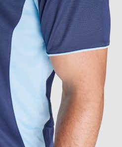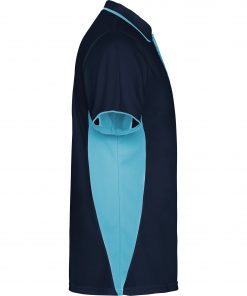 Polo técnico manga corta transpirable bicolor. Paneles laterales y en sisa. Cuello rib 1×1 al tono con detalle a contraste. Vivo del mismo tejido en bocamanga. Tapeta con 3 botones. Cubrecosturas del mismo tejido a contraste. Certificado UV.