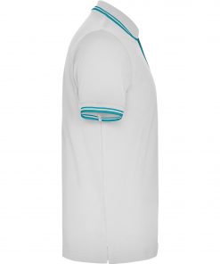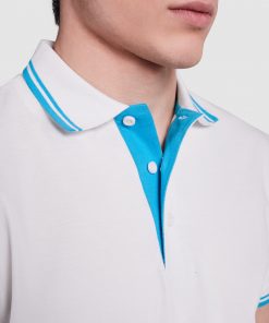 Polo de manga corta de algodón peinado. Punto piqué. Cuello y mangas tejidos 1×1 a contraste de color. Tapeta de 3 botones a contraste de color. Cubrecosturas en cuello del mismo tejido. Aperturas laterales en bajo.