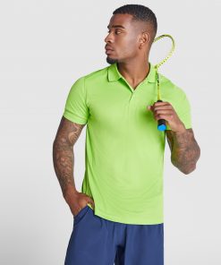 Polo técnico manga corta transpirable. Cuello rib 1×1 al tono. Tapeta con 3 botones. Cubrecosturas del mismo tejido al tono. Certificado UV.