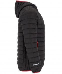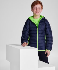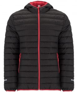 Parka acolchada deportiva con capucha. Cremallera frontal invertida a contraste de color. Bolsillos laterales con cremalleras invertidas a contraste de color. Interior a contraste de color. Vivos elásticos a contraste de color en bajo, puños y contorno de capucha. Faldón trasero. Detalles reflectantes.