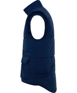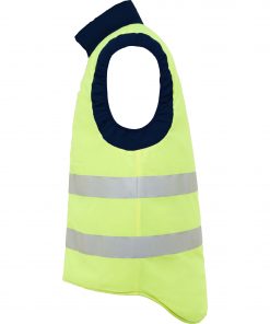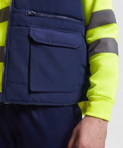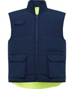 Chaleco alta visibilidad acolchado multibolsillos reversible con faldón trasero.