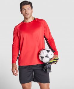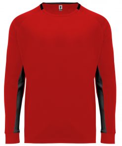 Camiseta manga larga ranglan transpirable. Paneles a contraste de color en el interior de las mangas. Detalle a contraste de color en cuello. Coderas acolchadas. Puños en rib 1×1.