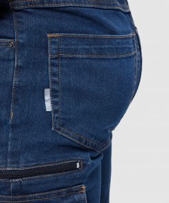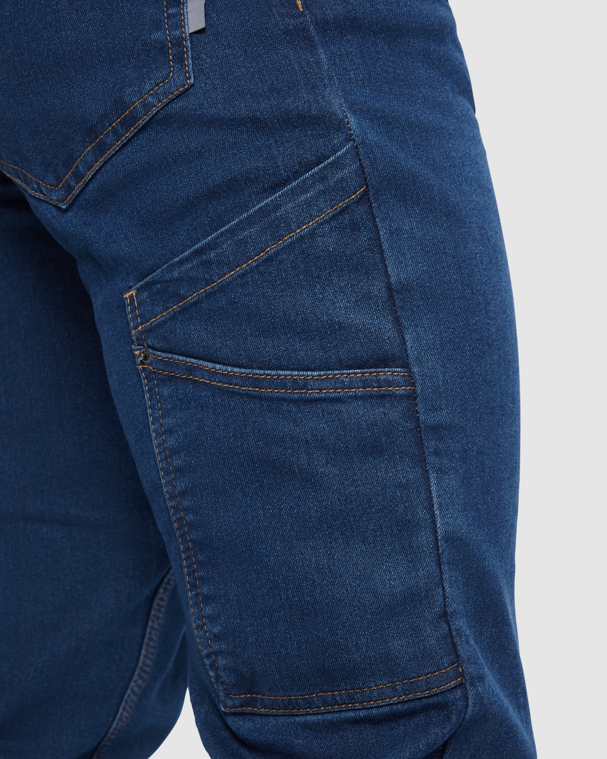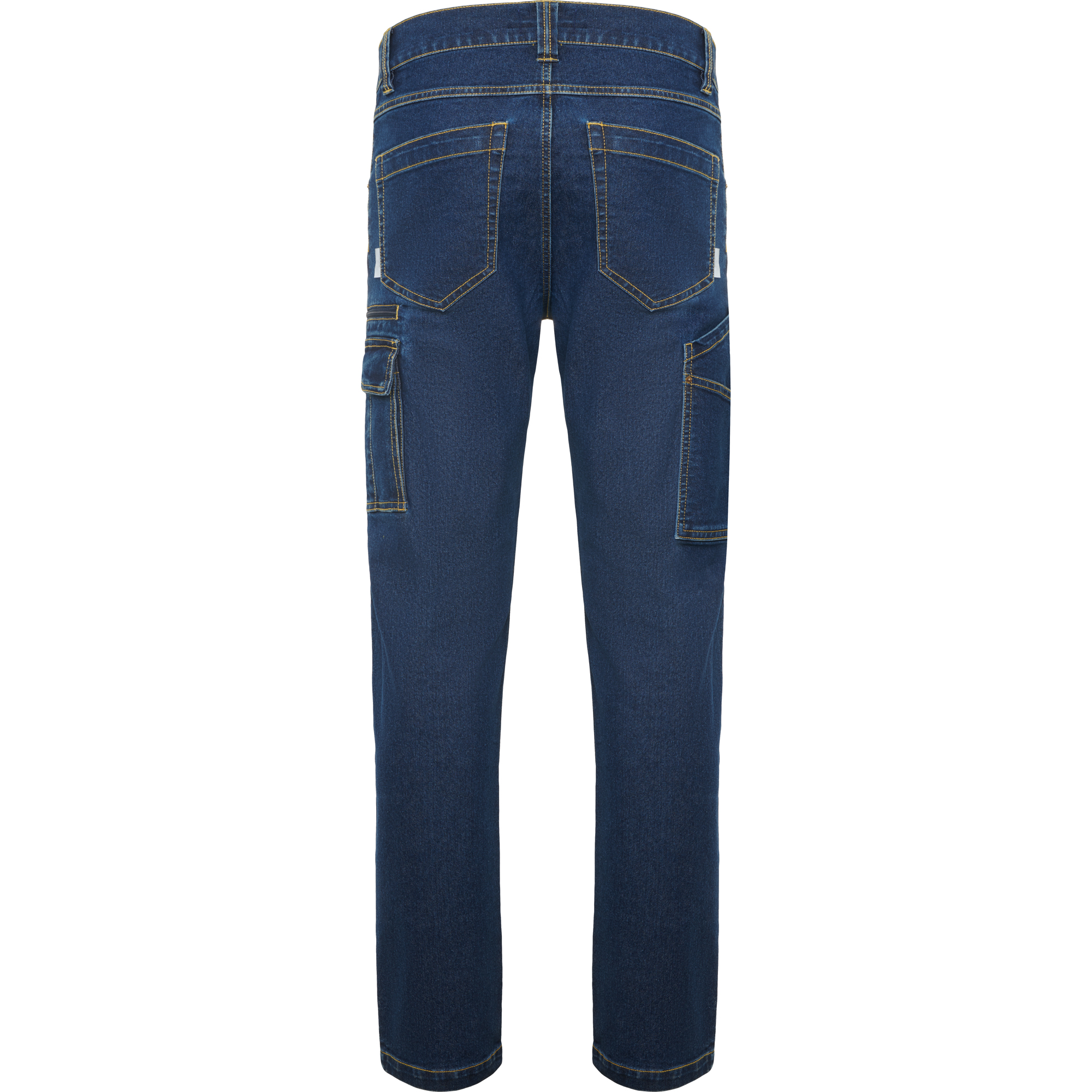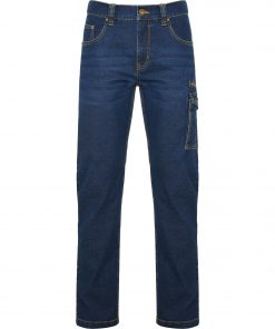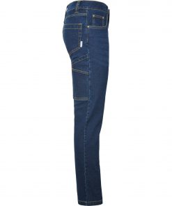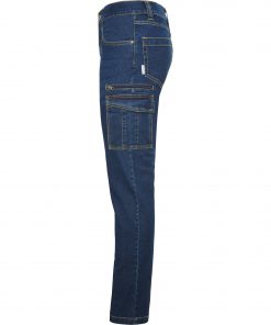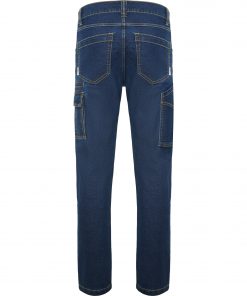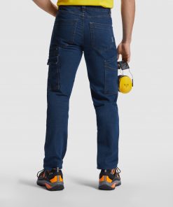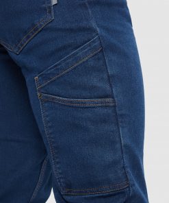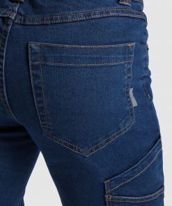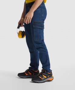 Pantalón largo vaquero multibolsillos con costuras laterales ligeramente adelantadas.