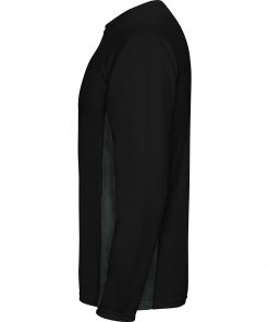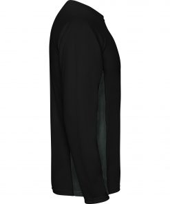 Camiseta técnica combinada, con dos tejidos de poliéster. Manga larga de estilo ranglán. Tejido principal bird´s eye y paneles laterales e interior de la manga con tejido micro perforado. Cuello redondo con cubrecosturas de refuerzo en su interior. Camiseta de tejido confortable y fácilmente adaptable al cuerpo.