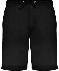Pantalón corto deportivo básico felpa no perchada. Cintura engomada y cordón ajustable con ojales metálicos. Bolsillos laterales y uno trasero. Dobladdillo en bajos casual.