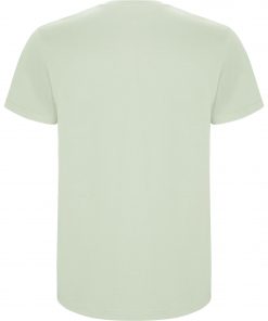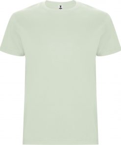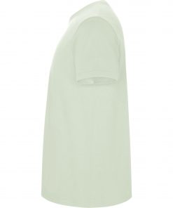 Camiseta de manga corta tubular en tallas de adulto y costuras laterales en tallas de niño. Cuello redondo en canalé 1×1. Cubrecosturas en cuello del mismo tejido.