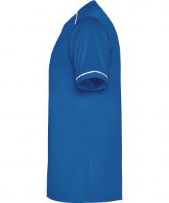 Conjunto deportivo unisex de camisetas y pantalón transpirable. Camiseta cuello pico bicolor. Detalle de vivos a contraste en hombros y mangas. Cubrecosturas en el cuello. Pantalón con cintura engomada y cordón de ajuste. Contraste de color. Aperturas laterales.