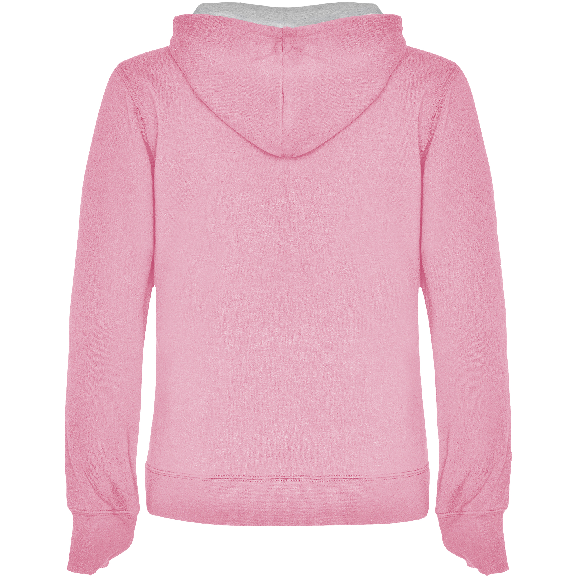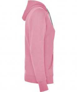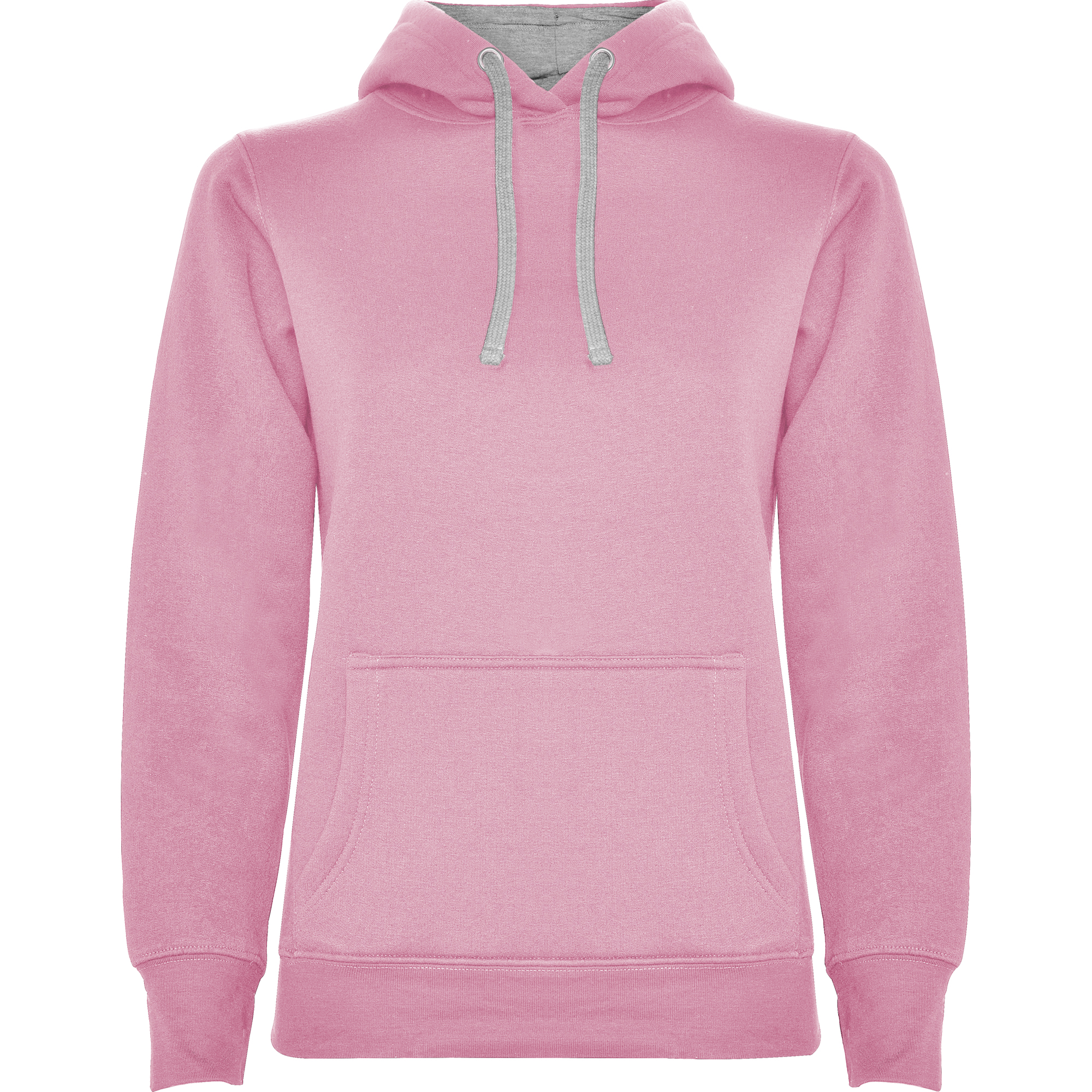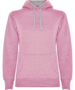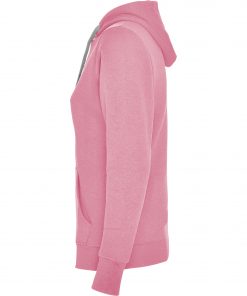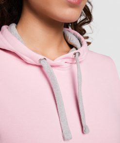 Sudadera con capucha forrada. Puños y cinturilla en canalé 1×1 con elastano. Apertura en puños para el pulgar. Cubrecosturas del mismo tejido. Cordón plano en capucha. Opciones de colores con capucha a contraste y ojales metálicos al tono.
