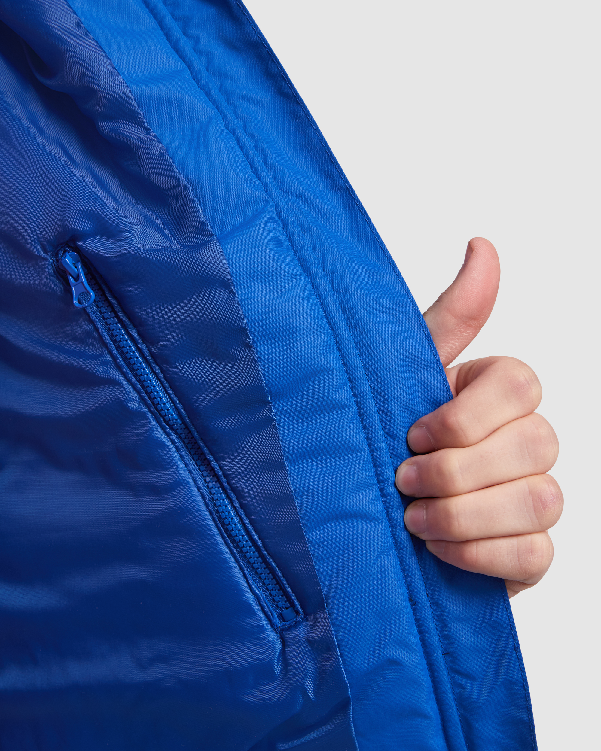 · Cuello alto con interior forrado en punto canalé 2×2.