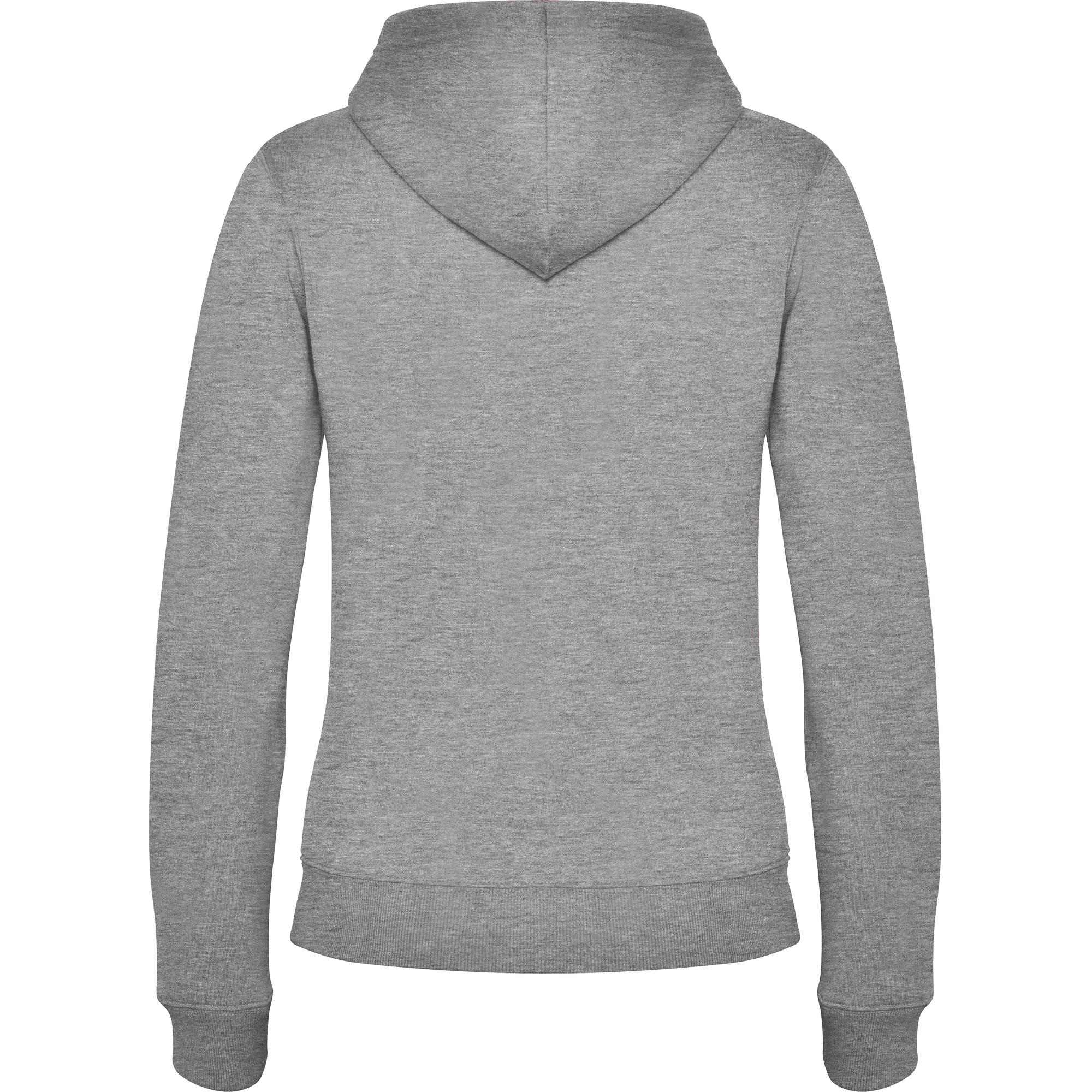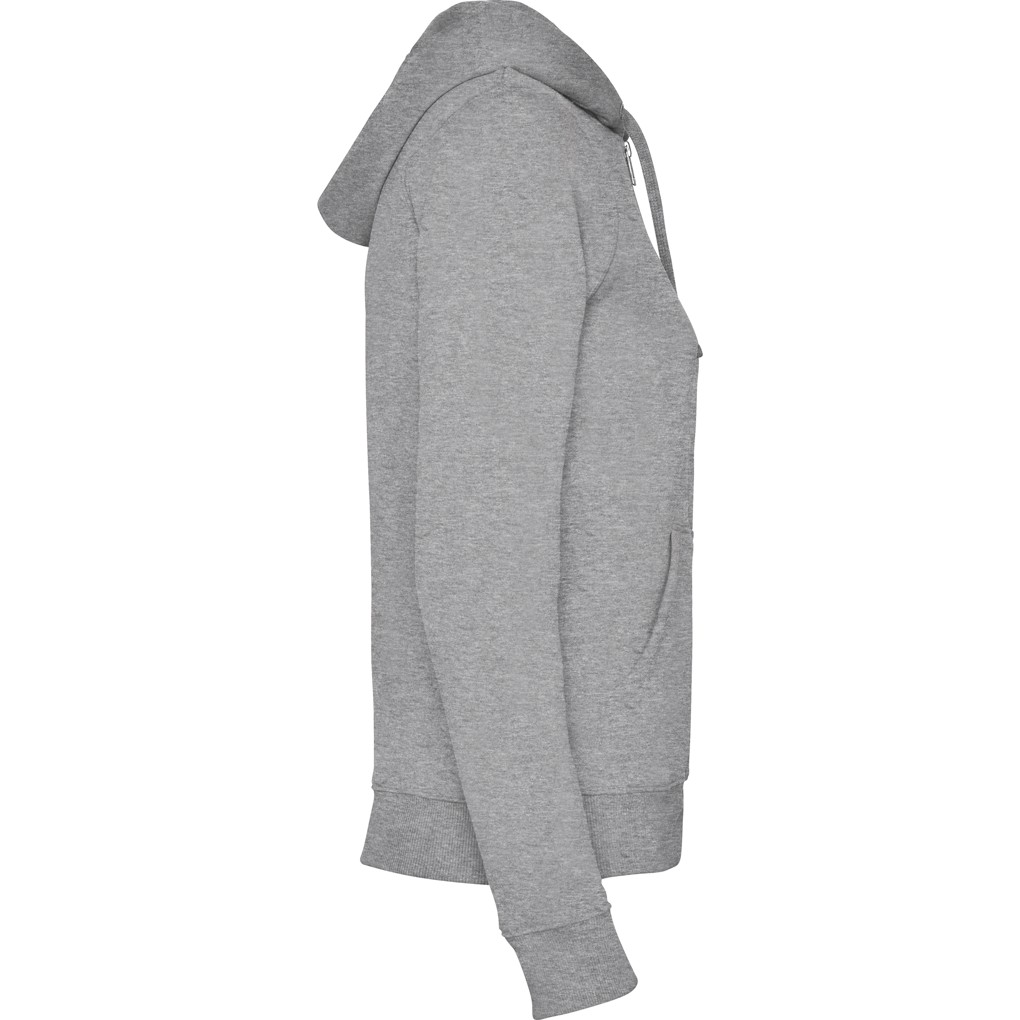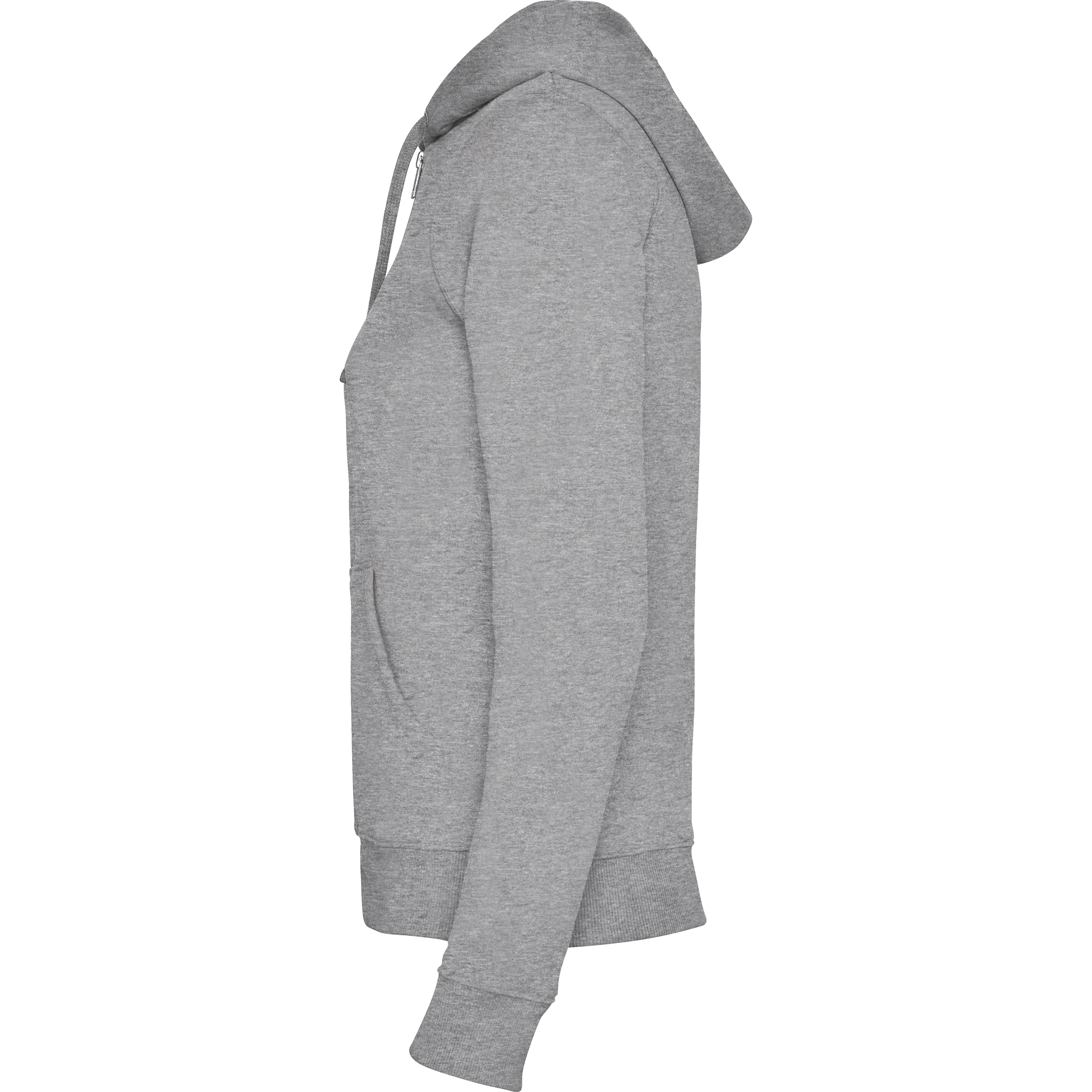 Sudadera entallada en cintura con cremallera frontal y capucha. Cremallera metálica. Bolsillos canguro, puños y cinturilla en canalé 2×1 con elastano. Cordón plano al tono en capucha. Cubrecosturas del mismo tejido.