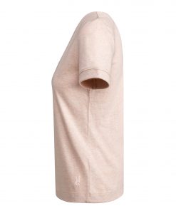 Camiseta gruesa de mujer en manga corta de algodón. Cuello redondo y ribete mangas en canalé ancho 2×1. Cubrecosturas reforzado en cuello. Costuras laterales. Logo Roly a tono en bajo lateral izquierdo. Costura ancha en el bajo.