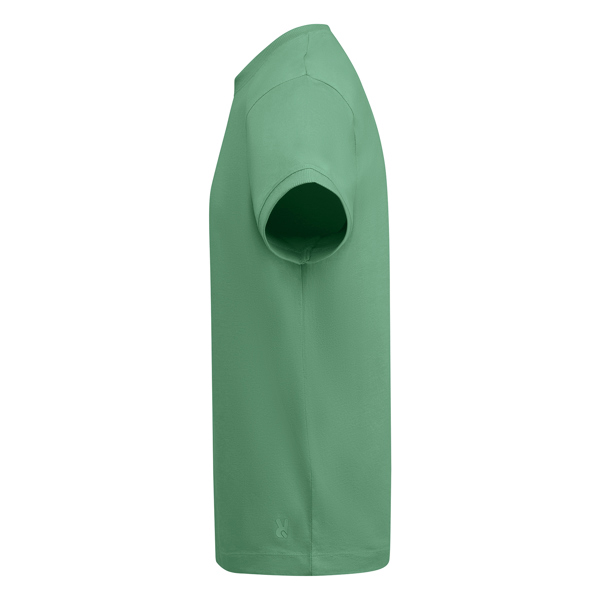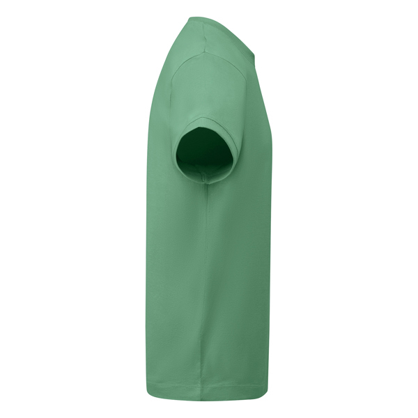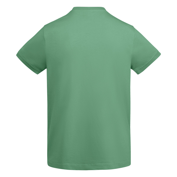 Camiseta gruesa de hombre en manga corta de algodón. Cuello redondo y ribete mangas en canalé ancho 2×1. Cubrecosturas reforzado en cuello. Costuras laterales. Logo Roly a tono en bajo lateral izquierdo. Costura ancha en el bajo.