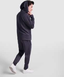 Sudadera con capucha en tejido ligero. Capucha con pinza de una sola pieza. Costuras laterales y costuras de mangas adelantadas. Bolsillos integrados en costuras laterales. Ajustador de PVC con goma elástica en la costura de la cintura. Logo Roly al tono en la manga izquierda.