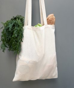 Bolsa de 180 g/m² especialmente diseñada para compra elaborada en 100% algodón en color natural. Con asas largas de 70 cm para mayor comodidad y versatilidad en su uso y transporte.
