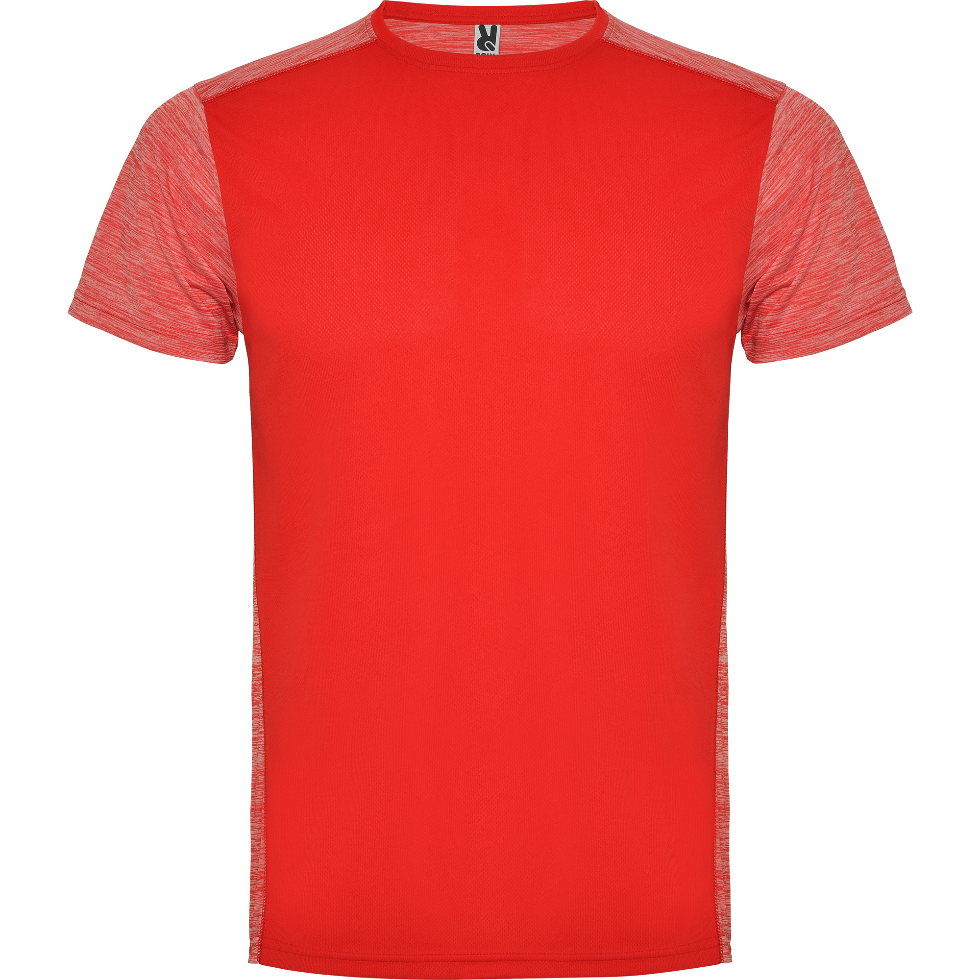 Camiseta técnica manga corta transpirable. Combinación de tejidos y colores. Costuras anti roce. Cuello redondo y cubrecosturas del mismo tejido al tono del frontal.